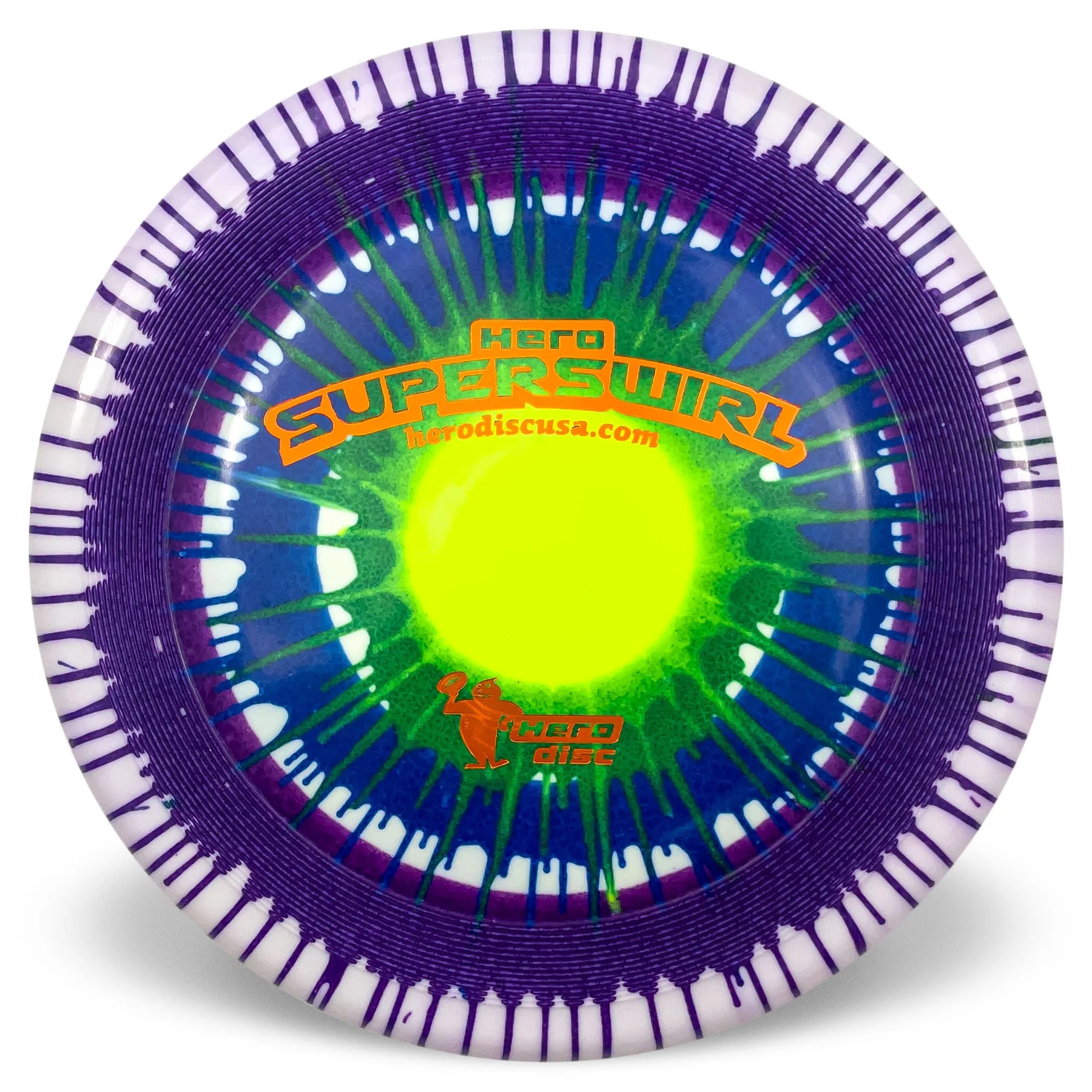 SuperSwirl 235 Hero Discs are made from the same durable, bite-resistant plastic as the SuperStar 235. As with the SuperStar, SuperSwirls have noticeably softer plastic and weigh approximately 5 grams lighter than the SuperHero 235. SuperSwirl Hero Discs are individually handcrafted and dyed with safe eco-friendly inks. Photos for reference only as each disc is unique.